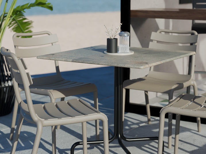 Unser Tischgestell Halvar: ein GO IN Design-Werk. Stabil dank pulverbeschichtetem Stahlgestell und zugleich filigran durch seine geschwungenen Gestellbeine. Ideal für die Bewirtung von Gästen in Außenbereichen von Restaurants, Cafés und Imbissen. Inklusive besonderem Leveling-System! Dank unserem integriertem Niveauregulierungssystem können Bodenunebenheiten von bis zu 26mm ausgeglichen werden. Erhältlich in unserer monochromen Farbauswahl, sowie einer Vielzahl an Tischplatten.Artikelnummer