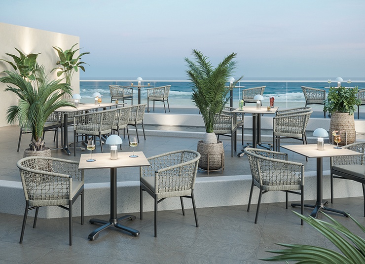 Goed te hanteren en ruimtebesparend op te bergen wanneer niet in gebruik, is het lichte, zijdelings stapelbare tafelframe Sonam met Flat-technologie en kantelmechanisme. Sonam is gemaakt van zwart gepoedercoat aluminium, waardoor het bijzonder bestand is tegen weersinvloeden.Artikelnummer