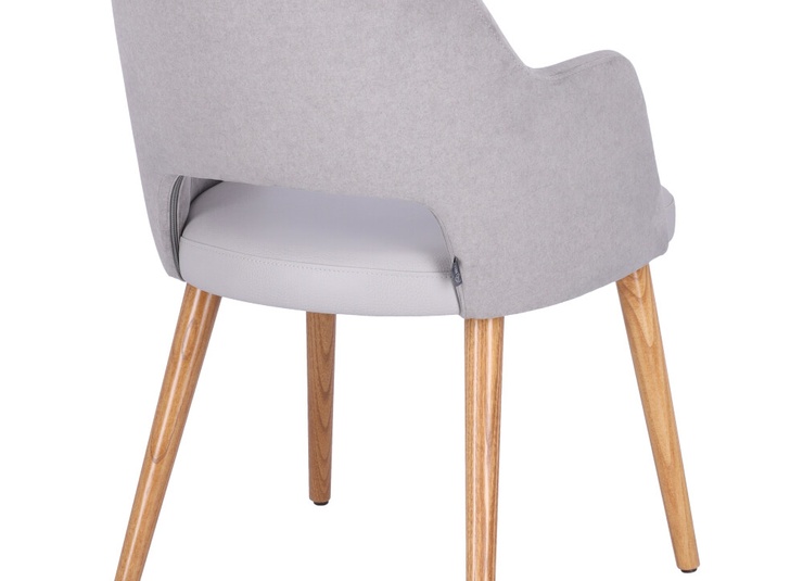 De gestoffeerde stoel Liska – naar keuze met of zonder armleuningen – zet met de markante uitsparing in de rugleuning een bijzonder accent. Hij overtuigt door hoog zitcomfort en is verkrijgbaar in de bekledingsstoffen Cosy, Minea en Cosyshine. Er zijn vier onderstellen beschikbaar: eiken naturel, beuken meranobruin, zwart gepoedercoat staal of zwart met messing hulzen voor een extravagante look. Daarnaast is Liska ook verkrijgbaar met een draaionderstel met terugkeerfunctie – voor meer bewegingsvrijheid aan tafel en een automatisch opgeruimde uitstraling na het opstaan.- Signature-detail: De uitsparing in de rugleuning maakt Liska direct herkenbaar en zet een duidelijk accent