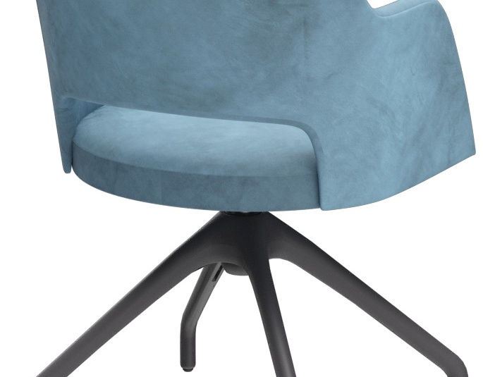 De gestoffeerde stoel Liska – naar keuze met of zonder armleuningen – zet met de markante uitsparing in de rugleuning een bijzonder accent. Hij overtuigt door hoog zitcomfort en is verkrijgbaar in de bekledingsstoffen Cosy, Minea en Cosyshine. Er zijn vier onderstellen beschikbaar: eiken naturel, beuken meranobruin, zwart gepoedercoat staal of zwart met messing hulzen voor een extravagante look. Daarnaast is Liska ook verkrijgbaar met een draaionderstel met terugkeerfunctie – voor meer bewegingsvrijheid aan tafel en een automatisch opgeruimde uitstraling na het opstaan.- Signature-detail: De uitsparing in de rugleuning maakt Liska direct herkenbaar en zet een duidelijk accent