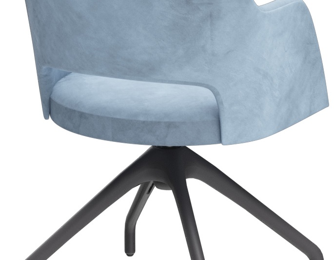 De gestoffeerde stoel Liska – naar keuze met of zonder armleuningen – zet met de markante uitsparing in de rugleuning een bijzonder accent. Hij overtuigt door hoog zitcomfort en is verkrijgbaar in de bekledingsstoffen Cosy, Minea en Cosyshine. Er zijn vier onderstellen beschikbaar: eiken naturel, beuken meranobruin, zwart gepoedercoat staal of zwart met messing hulzen voor een extravagante look. Daarnaast is Liska ook verkrijgbaar met een draaionderstel met terugkeerfunctie – voor meer bewegingsvrijheid aan tafel en een automatisch opgeruimde uitstraling na het opstaan.- Signature-detail: De uitsparing in de rugleuning maakt Liska direct herkenbaar en zet een duidelijk accent
