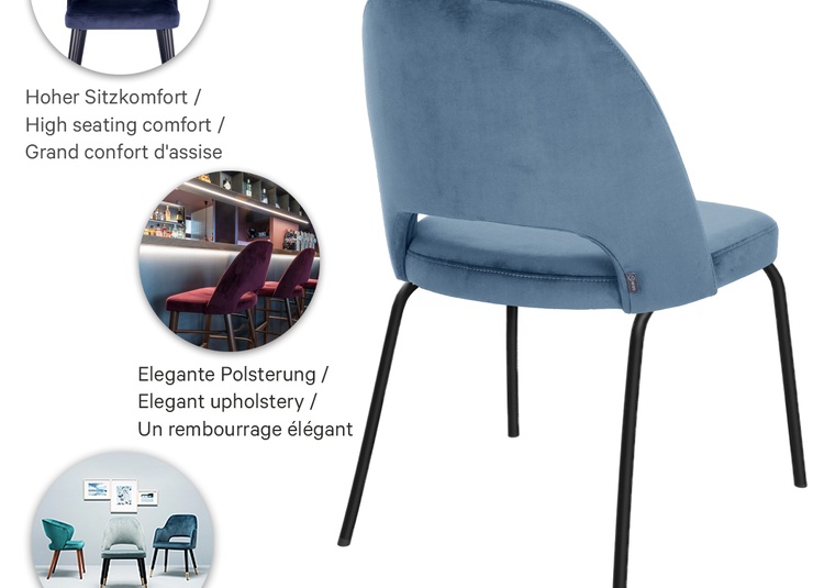De gestoffeerde stoel Liska – naar keuze met of zonder armleuningen – zet met de markante uitsparing in de rugleuning een bijzonder accent. Hij overtuigt door hoog zitcomfort en is verkrijgbaar in de bekledingsstoffen Cosy, Minea en Cosyshine. Er zijn vier onderstellen beschikbaar: eiken naturel, beuken meranobruin, zwart gepoedercoat staal of zwart met messing hulzen voor een extravagante look. Daarnaast is Liska ook verkrijgbaar met een draaionderstel met terugkeerfunctie – voor meer bewegingsvrijheid aan tafel en een automatisch opgeruimde uitstraling na het opstaan.- Signature-detail: De uitsparing in de rugleuning maakt Liska direct herkenbaar en zet een duidelijk accent