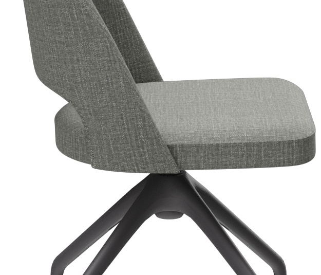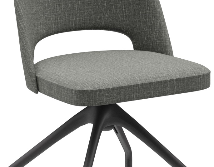 De gestoffeerde stoel Liska – naar keuze met of zonder armleuningen – zet met de markante uitsparing in de rugleuning een bijzonder accent. Hij overtuigt door hoog zitcomfort en is verkrijgbaar in de bekledingsstoffen Cosy, Minea en Cosyshine. Er zijn vier onderstellen beschikbaar: eiken naturel, beuken meranobruin, zwart gepoedercoat staal of zwart met messing hulzen voor een extravagante look. Daarnaast is Liska ook verkrijgbaar met een draaionderstel met terugkeerfunctie – voor meer bewegingsvrijheid aan tafel en een automatisch opgeruimde uitstraling na het opstaan.- Signature-detail: De uitsparing in de rugleuning maakt Liska direct herkenbaar en zet een duidelijk accent