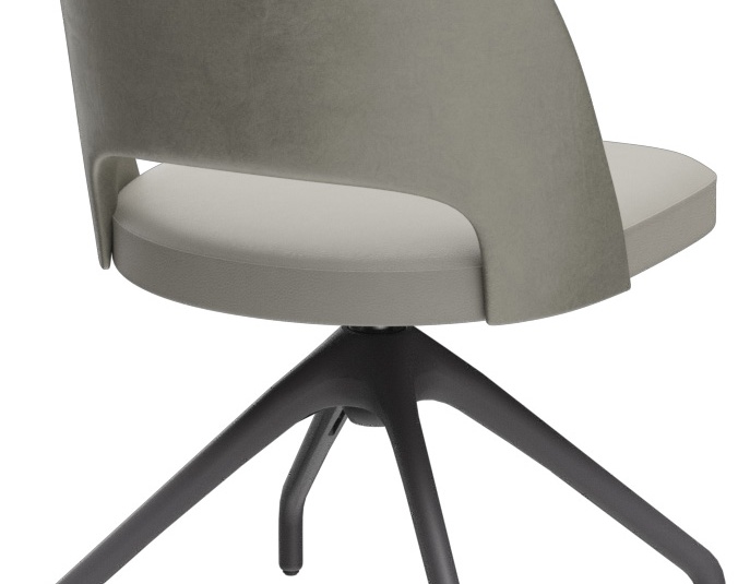 De gestoffeerde stoel Liska – naar keuze met of zonder armleuningen – zet met de markante uitsparing in de rugleuning een bijzonder accent. Hij overtuigt door hoog zitcomfort en is verkrijgbaar in de bekledingsstoffen Cosy, Minea en Cosyshine. Er zijn vier onderstellen beschikbaar: eiken naturel, beuken meranobruin, zwart gepoedercoat staal of zwart met messing hulzen voor een extravagante look. Daarnaast is Liska ook verkrijgbaar met een draaionderstel met terugkeerfunctie – voor meer bewegingsvrijheid aan tafel en een automatisch opgeruimde uitstraling na het opstaan.- Signature-detail: De uitsparing in de rugleuning maakt Liska direct herkenbaar en zet een duidelijk accent