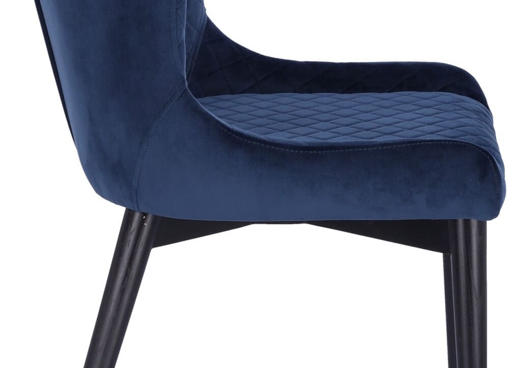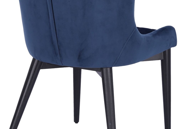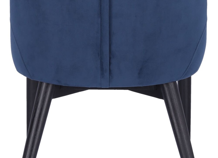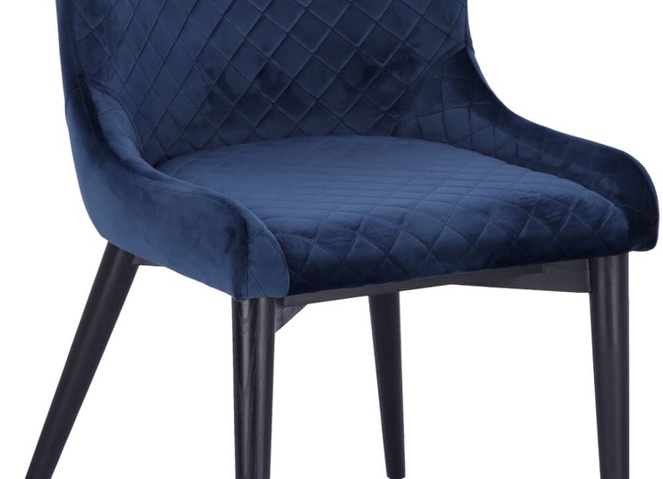 Buitenkant glad, binnenkant gestikt: De stoel Mils straalt elegantie uit door zijn ronde vormgeving en comfortabele breedte. Het frame is gemaakt van zwart gebeitst en gelakt eikenhout. Als bekleding is er keuze tussen de fluweelachtige stof Tiana in middernachtsblauw of het kunstleer Kavita cognac.Artikelnummer
