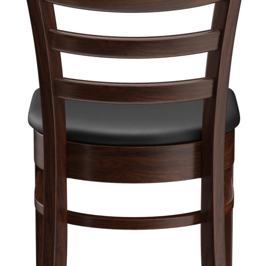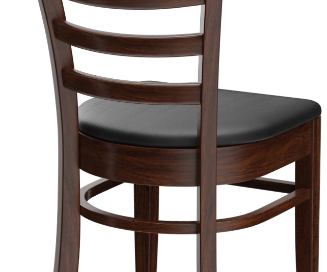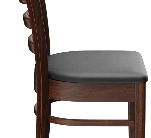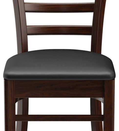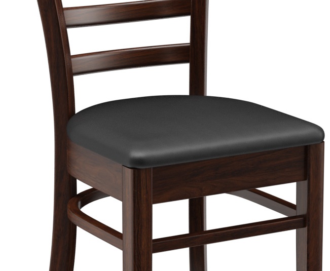 Een typisch trattoria-zitmeubel is het model Ute met zijn naar beneden taps toelopende spijlenrugleuning – verkrijgbaar als stoel en als barkruk. Ute is gemaakt van heveahout in de kleur noten. De gestoffeerde zitting van het kunstleder Casual is beschikbaar in drie kleuren. Voor de barkruk is een voetsteunbeschermer verkrijgbaar.- Massiefhouten stoel