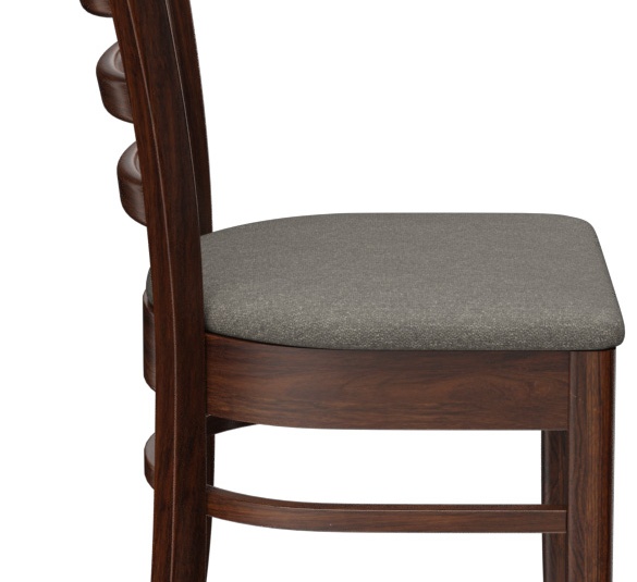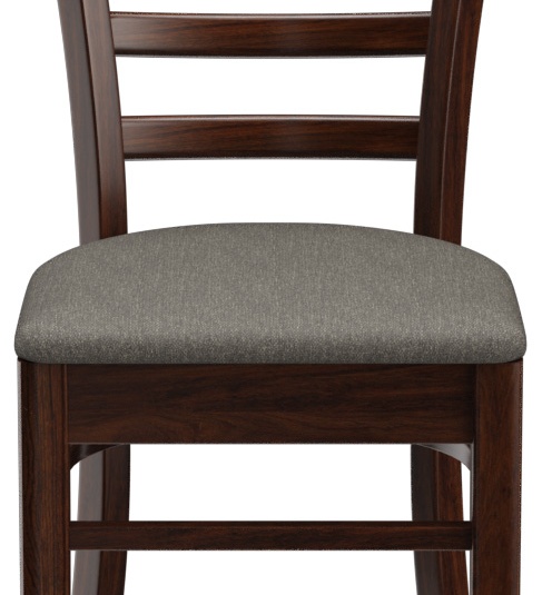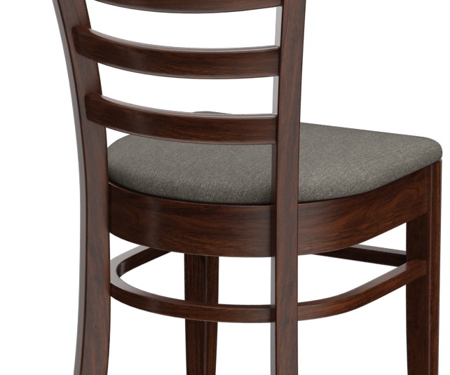 Een typisch trattoria-zitmeubel is het model Ute met zijn naar beneden taps toelopende spijlenrugleuning – verkrijgbaar als stoel en als barkruk. Ute is gemaakt van heveahout in de kleur noten. De gestoffeerde zitting van het kunstleder Casual is beschikbaar in drie kleuren. Voor de barkruk is een voetsteunbeschermer verkrijgbaar.- Massiefhouten stoel