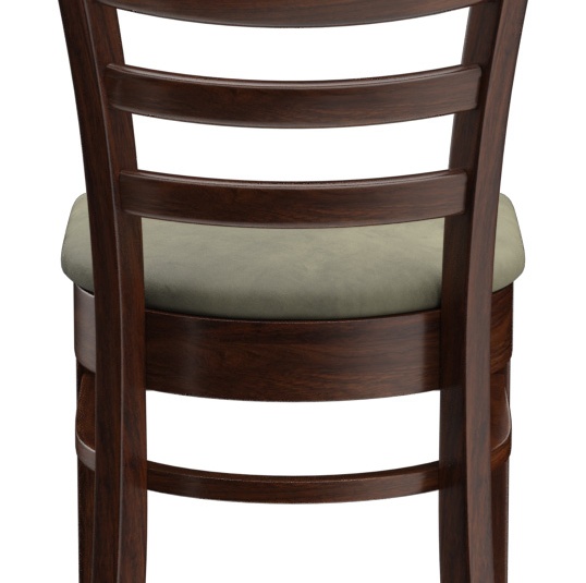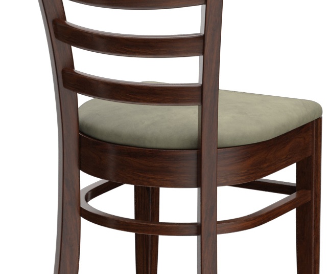 Een typisch trattoria-zitmeubel is het model Ute met zijn naar beneden taps toelopende spijlenrugleuning – verkrijgbaar als stoel en als barkruk. Ute is gemaakt van heveahout in de kleur noten. De gestoffeerde zitting van het kunstleder Casual is beschikbaar in drie kleuren. Voor de barkruk is een voetsteunbeschermer verkrijgbaar.- Massiefhouten stoel