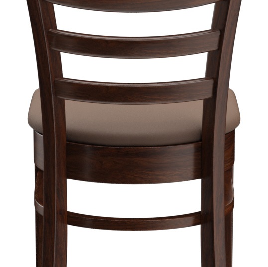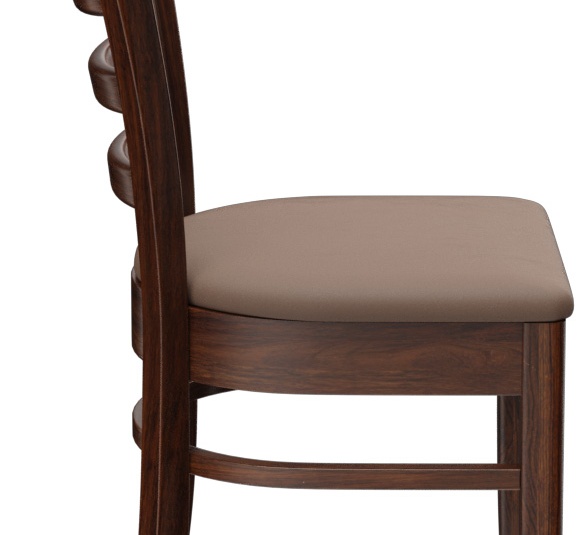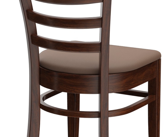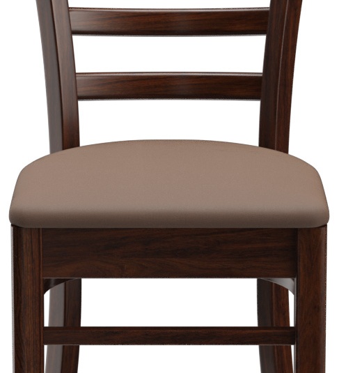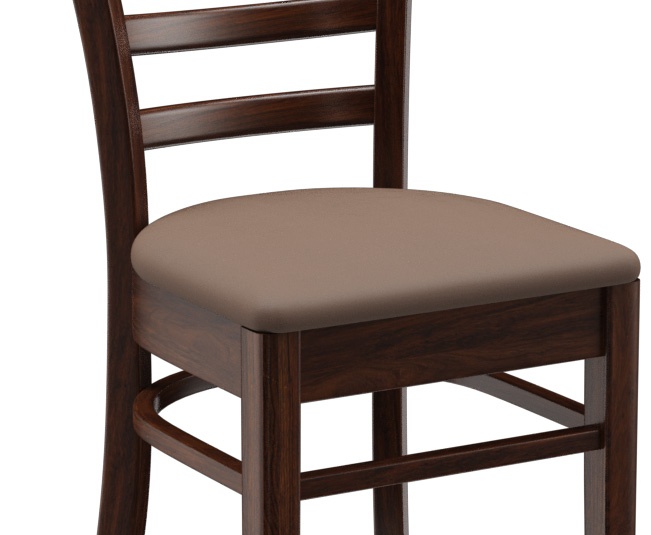 Een typisch trattoria-zitmeubel is het model Ute met zijn naar beneden taps toelopende spijlenrugleuning – verkrijgbaar als stoel en als barkruk. Ute is gemaakt van heveahout in de kleur noten. De gestoffeerde zitting van het kunstleder Casual is beschikbaar in drie kleuren. Voor de barkruk is een voetsteunbeschermer verkrijgbaar.- Massiefhouten stoel