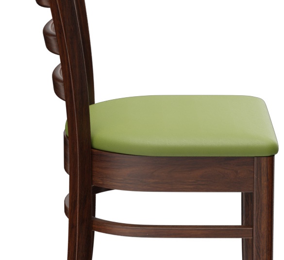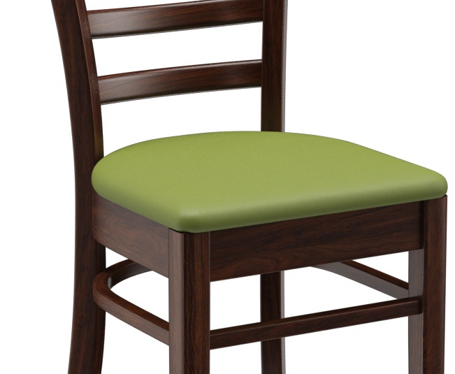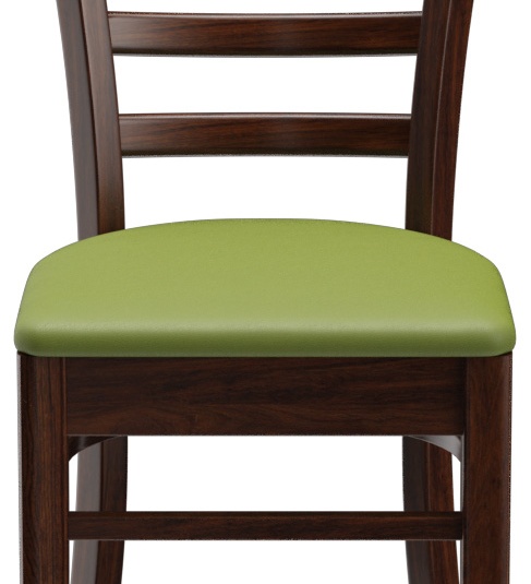Een typisch trattoria-zitmeubel is het model Ute met zijn naar beneden taps toelopende spijlenrugleuning – verkrijgbaar als stoel en als barkruk. Ute is gemaakt van heveahout in de kleur noten. De gestoffeerde zitting van het kunstleder Casual is beschikbaar in drie kleuren. Voor de barkruk is een voetsteunbeschermer verkrijgbaar.- Massiefhouten stoel