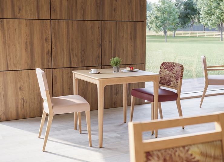 Het model Tasha met en zonder armleuningen past zich met zijn organische design naadloos aan in elke omgeving. De ronde hoeken en zachte vormen creëren, met een frame van beukenhout, gebeitst in de kleuren eiken of noten, een sfeer van geborgenheid. Het model is comfortabel en biedt met zijn functionele, ergonomische vorm vele toepassingsmogelijkheden op het gebied van gezondheid.Artikelnummer
