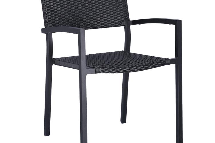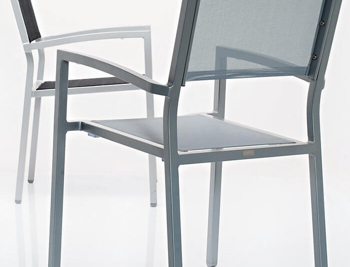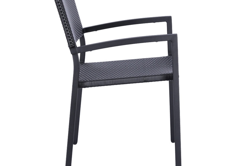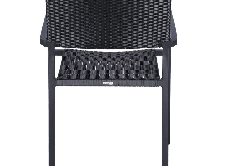 Minder is meer: De stapelbare armleunstoel Tom overtuigt met een minimalistisch, rechtlijnig design. Het frame is gemaakt van poedergecoat aluminium in zilver of zwart; de zitting en rugleuning zijn verkrijgbaar in een technische outdoorstof of in polyethyleenvlechtwerk.Artikelnummer