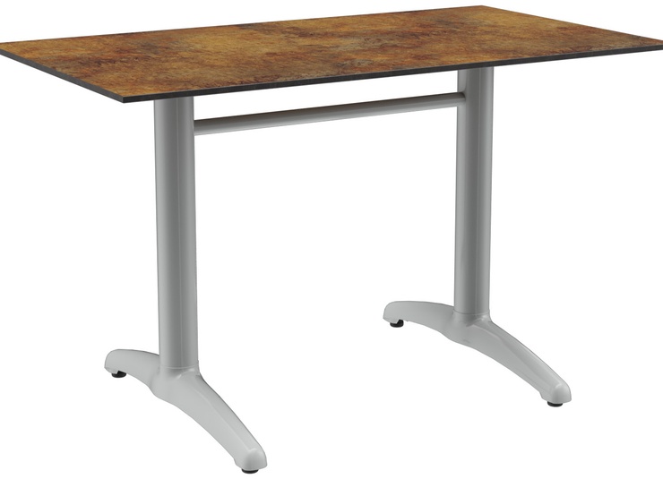 Elegant oogt de tafel Kenan met zijn licht gebogen voet. Het aluminium frame is verkrijgbaar in gepolijst aluminium, zilver of zwart en in eettafel- of statafelhoogte; het tafelblad is vrij te kiezen. Kenan is geschikt voor zowel binnen als buiten gebruik, verkrijgbaar met FLAT-technologie of verstelbare vloerglijders en kan optioneel worden uitgerust met een kantelmechanisme voor ruimtebesparende opslag.Artikelnummer