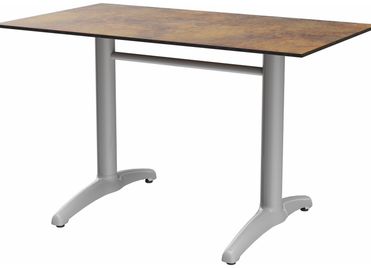 Elegant oogt de tafel Kenan met zijn licht gebogen voet. Het aluminium frame is verkrijgbaar in gepolijst aluminium, zilver of zwart en in eettafel- of statafelhoogte; het tafelblad is vrij te kiezen. Kenan is geschikt voor zowel binnen als buiten gebruik, verkrijgbaar met FLAT-technologie of verstelbare vloerglijders en kan optioneel worden uitgerust met een kantelmechanisme voor ruimtebesparende opslag.Artikelnummer