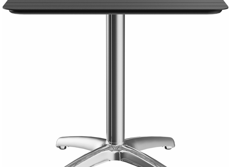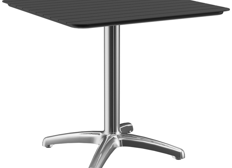 Elegant oogt de tafel Kenan met zijn licht gebogen voet. Het aluminium frame is verkrijgbaar in gepolijst aluminium, zilver of zwart en in eettafel- of statafelhoogte; het tafelblad is vrij te kiezen. Kenan is geschikt voor zowel binnen als buiten gebruik, verkrijgbaar met FLAT-technologie of verstelbare vloerglijders en kan optioneel worden uitgerust met een kantelmechanisme voor ruimtebesparende opslag.Artikelnummer