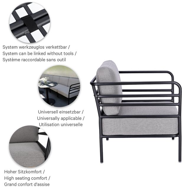 Sonica combineert Italiaans vakmanschap met slim design. Het met de hand vervaardigde kussen met hoogwaardig schuim zorgt voor maximaal comfort, terwijl het verfijnde, gepoedercoate aluminium frame voor een licht gewicht zorgt. Dankzij UV-bestendige hoezen – verkrijgbaar in Liso of het direct leverbare Sunset – blijft Sonica ook in de buitenlucht onberispelijk. Onze outdoorstof Liso, gemaakt van in de massa geverfd acryl, is kleurecht, duurzaam (20.000 toeren Martindale) en weerbestendig. Beide stoffen zijn waterafstotend (1.000 mm waterkolom) en onderhoudsvriendelijk dankzij de vlekbescherming. Slim ontwikkeld door GO IN: modulair, flexibel koppelbaar en klaar voor stijlvolle outdoor lounges.Artikelnummer