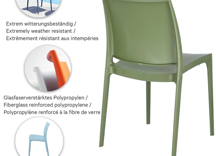 De eenvoudige en stapelbare buitensstoel Ean is gemaakt van glasvezelversterkt polypropyleen en is verkrijgbaar in een verscheidenheid aan kleuren.Artikelnummer